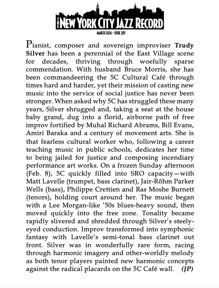 ‘Ms. Silver has successfully transcended the frontiers of her classical European music education and learned to speak the jazz language without accent’ Playthell G. Benjamin, Village Voice, WBAI Radio host